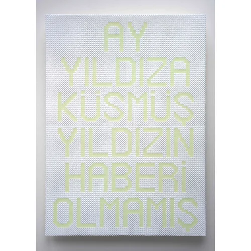 2024, glow in the dark fuse beads, 54.5 × 39.5 cm (text), 26 × 23 xm (moon), 23 × 23 cm (star)